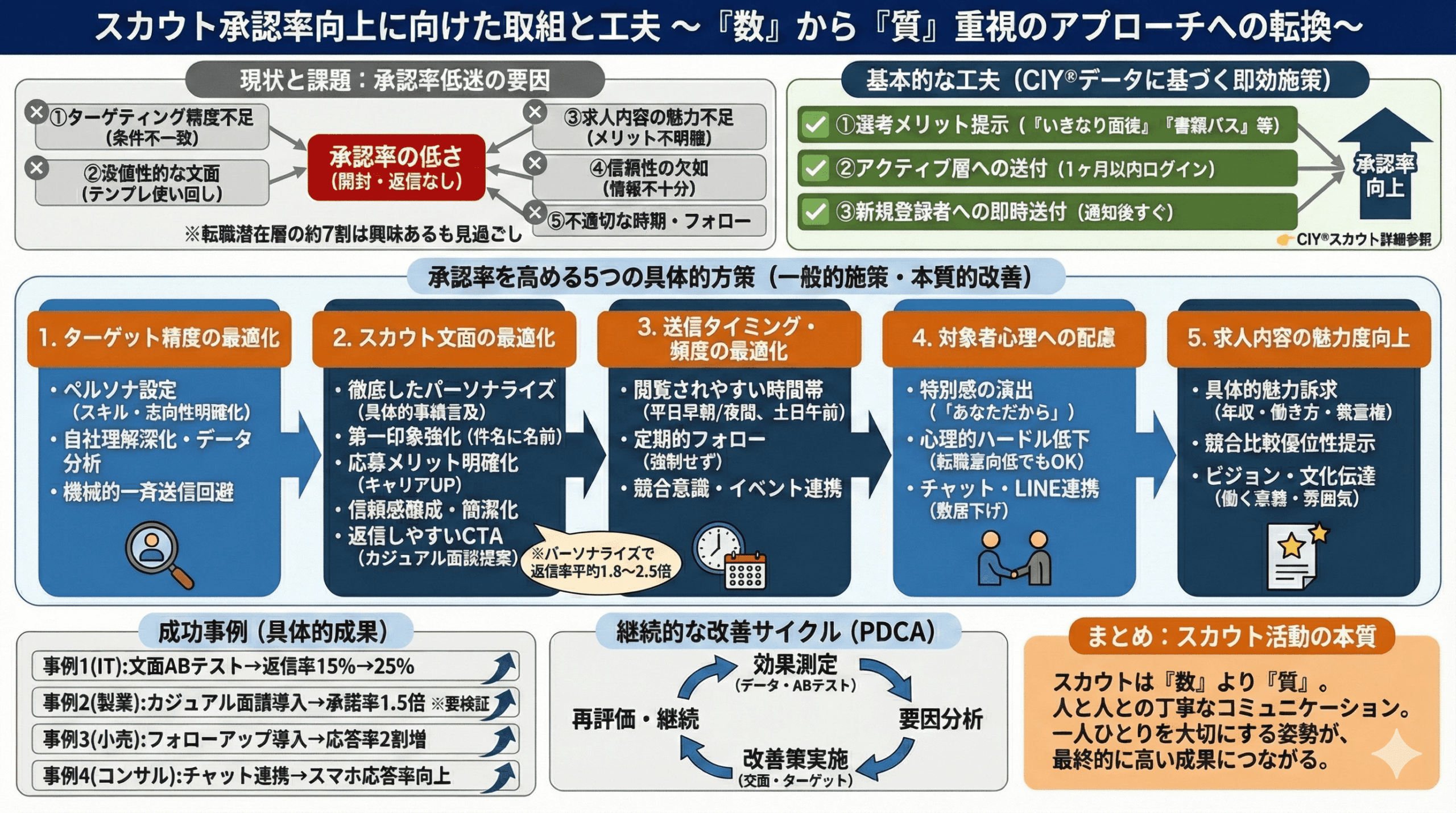 これらの課題を一つひとつ解決することで、スカウトの承認率は飛躍的に向上する可能性があります。