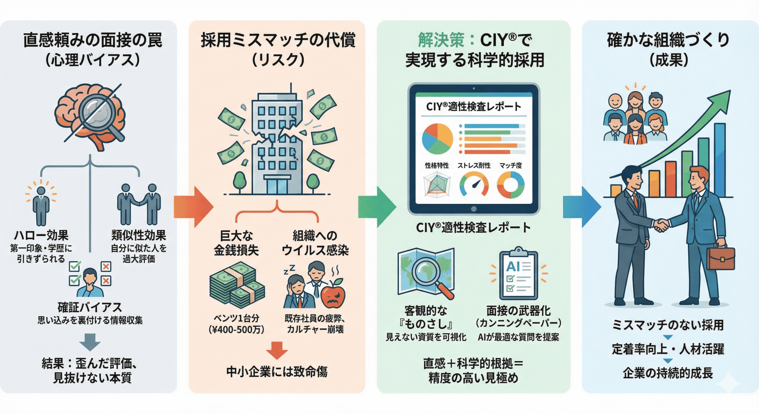 CIY®を導入することは、あなたの「眼力」を否定することではありません。 あなたの「眼力」に「科学的な根拠」をプラスし、最強の採用体制を作ることです。