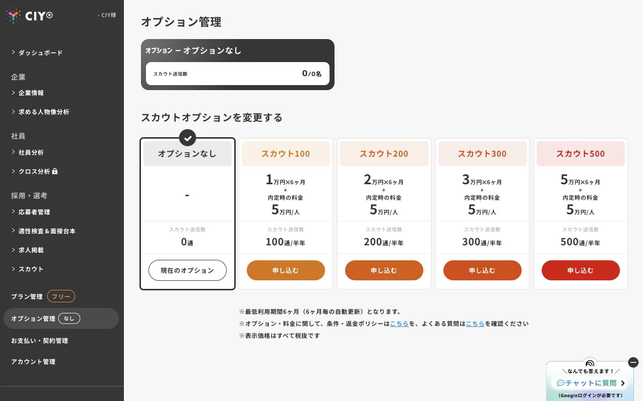 - 利用したいスカウトオプションを申し込み