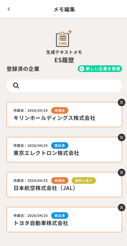 登録済の企業は一覧から検索することができ、登録されていない企業も簡単に追加できます!